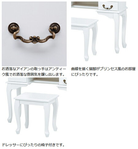 テレビ台 ブロカントシリーズ アンティーク調ドレッサーセット 鏡台 ヴィオレッタ食器棚 ブロカントシリーズ アンティーク調キャビネット ヴィオレッタ 引き出しタイプ 3段【MD-6345WH-S】【フェミニンウッドファニチャー】関連キーワード: